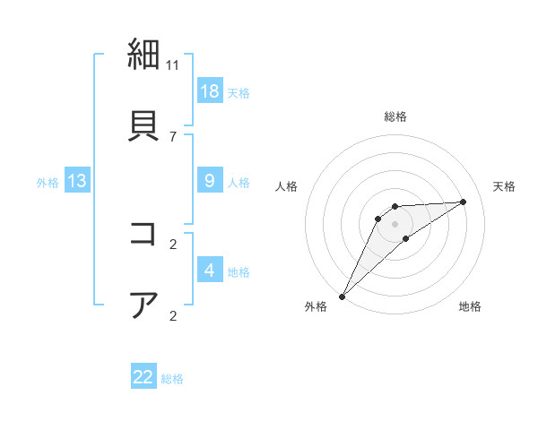 細貝 コアさんの総格は22画の1点!