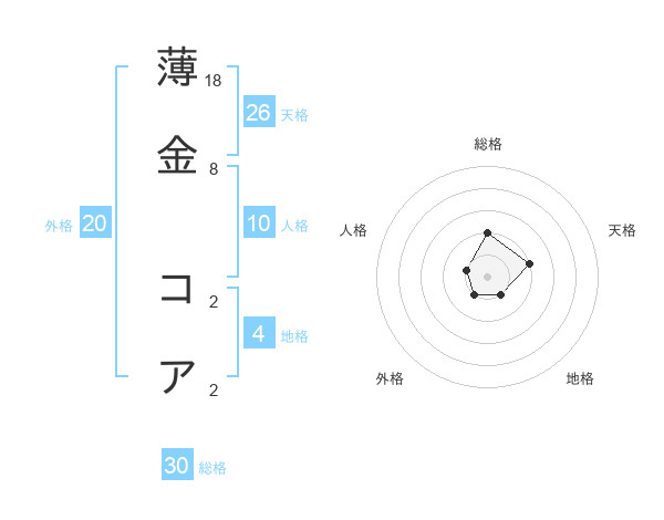薄金 コアさんの総格は30画の2点!