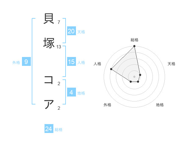 貝塚 コアさんの総格は24画の5点!