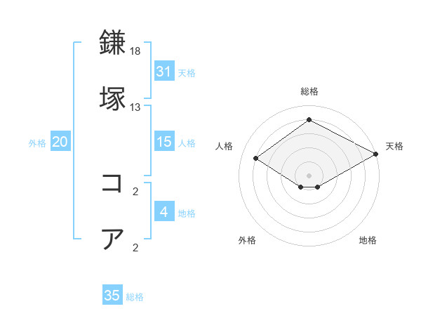 鎌塚 コアさんを姓名の画数から五運を鑑定