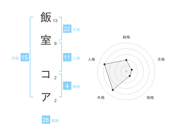 飯室 コアさんの総格は26画の2点!