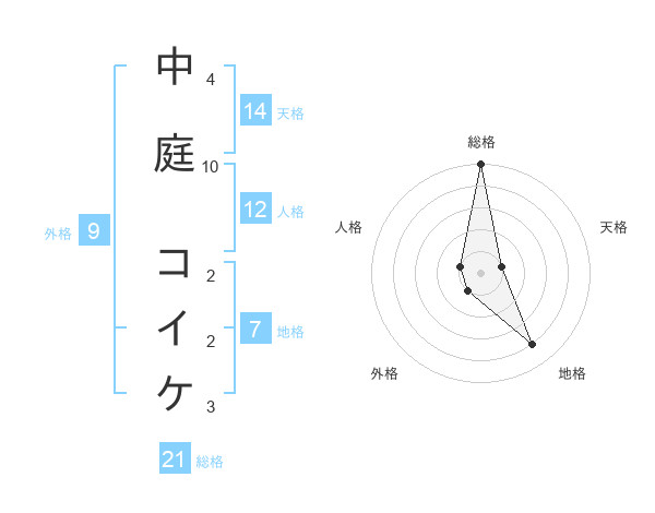 中庭 コイケさんの総格は21画の5点!