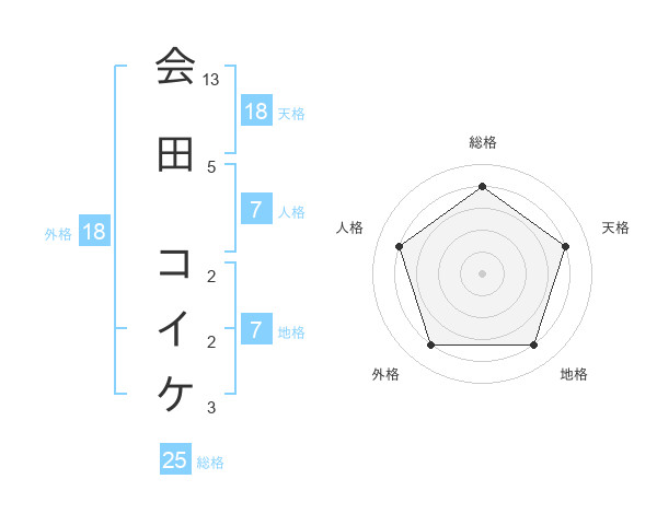 会田 コイケさんの総格は25画の4点
