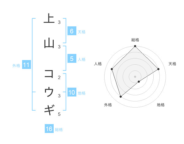 上山 コウギさんの総格は16画の5点!