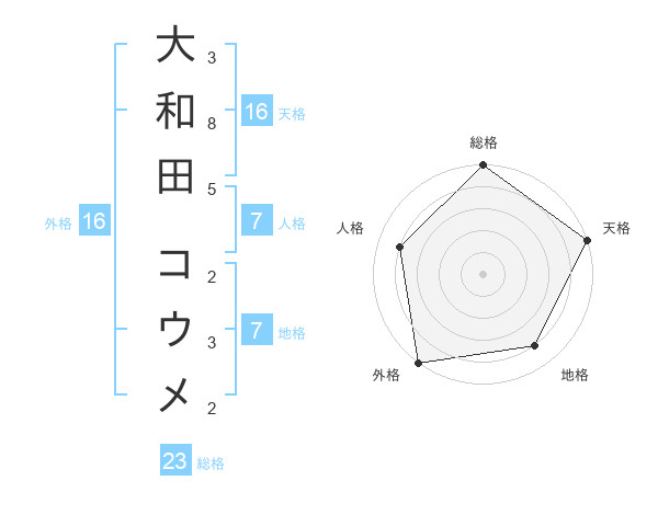 大和田 コウメさんを姓名の画数から五運を鑑定