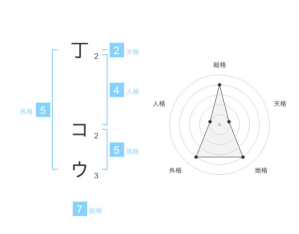 丁 コウさんの外格は5画の4点!