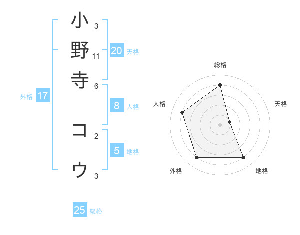 小野寺 コウさんを姓名の画数から五運を鑑定