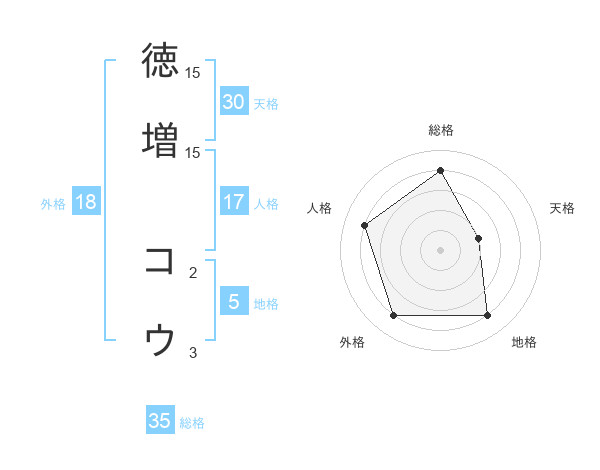 徳増 コウさんの天格は30画の2点!