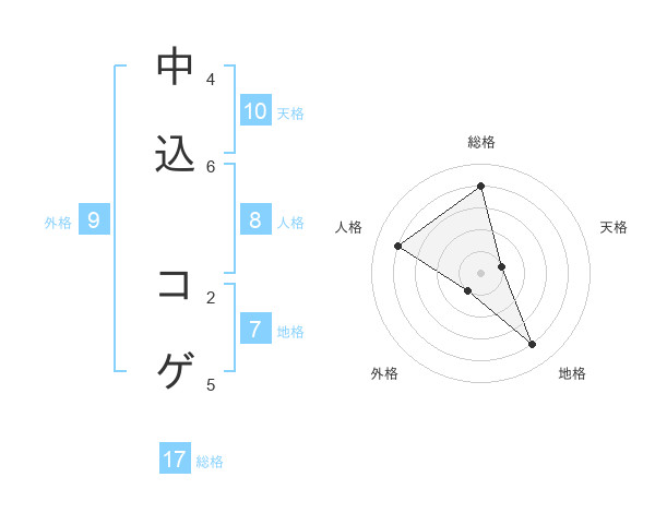 中込 コゲさんの総格は17画の4点!