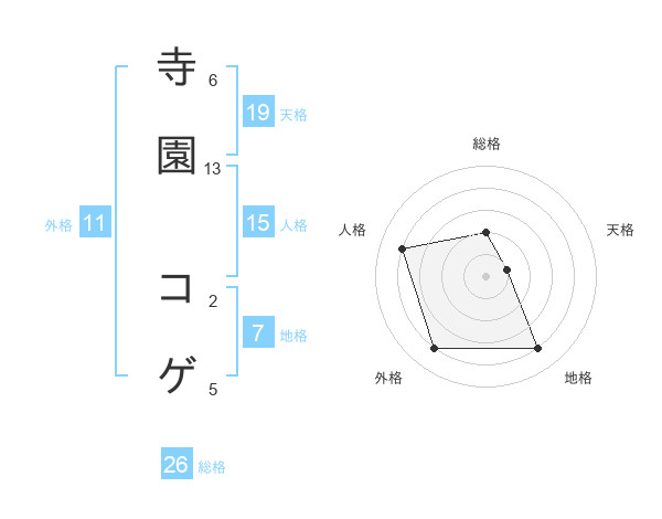 寺園 コゲさんの天格は19画の1点!