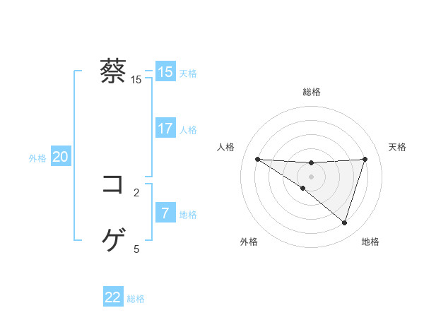 蔡 コゲさんの総格は22画の1点!