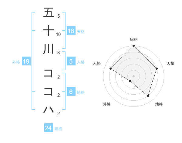 五十川 ココハさんを姓名の画数から五運を鑑定