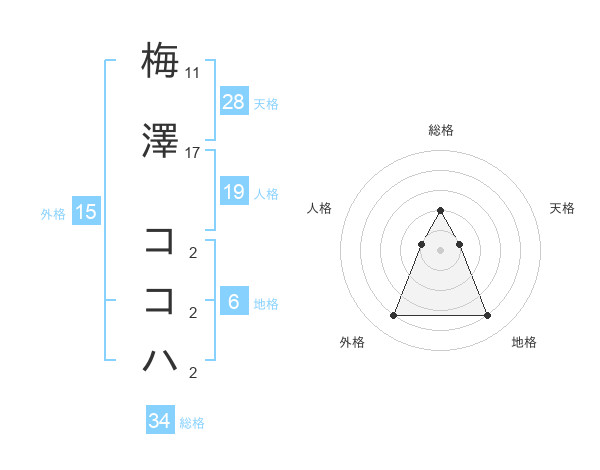 梅澤 ココハさんを姓名の画数から五運を鑑定