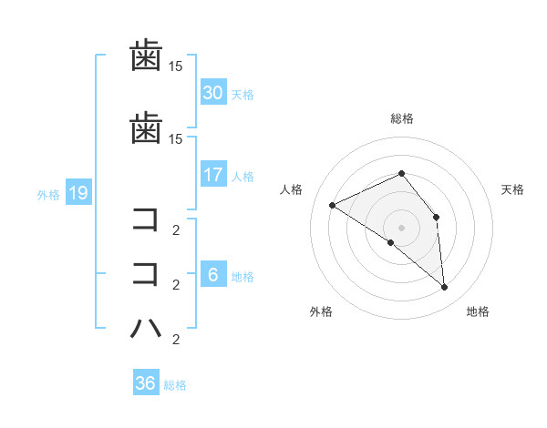 歯歯 ココハさんの外格は19画の1点!