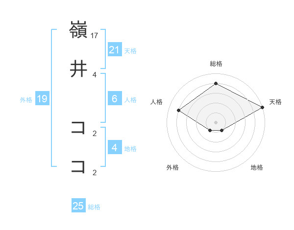 嶺井 ココさんの総格は25画の4点!