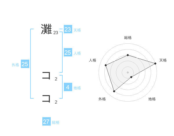 灘 ココさんの天格は23画の5点!