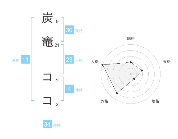炭竈 ココさんを姓名の画数から五運を鑑定