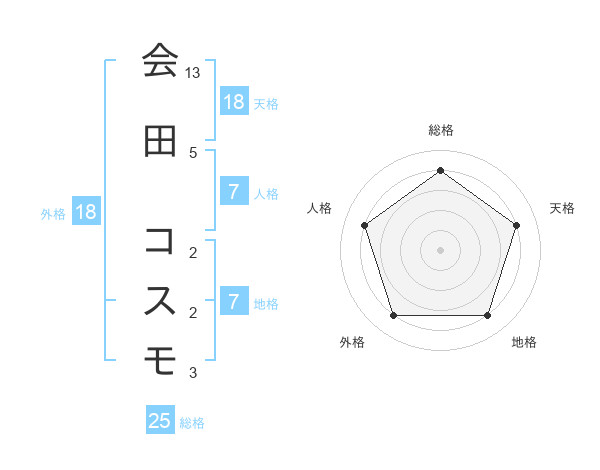 会田 コスモさんの天格は18画の4点!