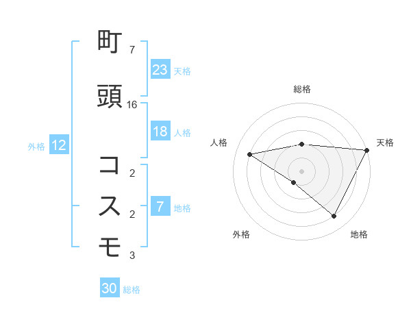 町頭 コスモさんの天格は23画の5点!