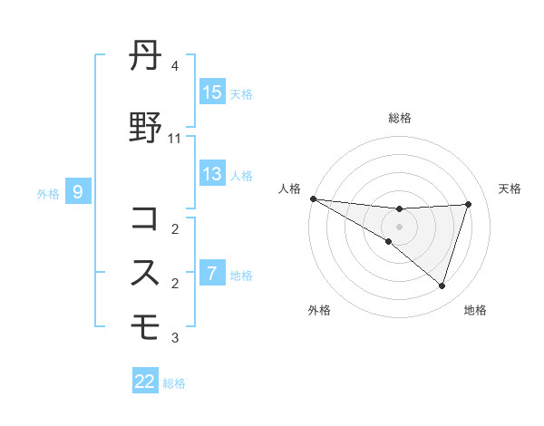 丹野 コスモさんを姓名の画数から五運を鑑定