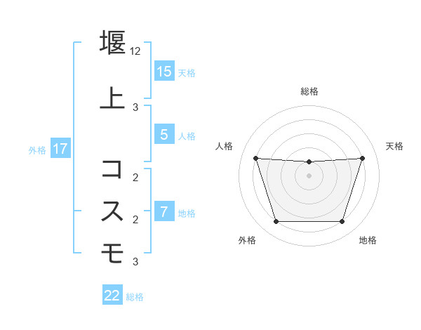 堰上 コスモさんを姓名の画数から五運を鑑定