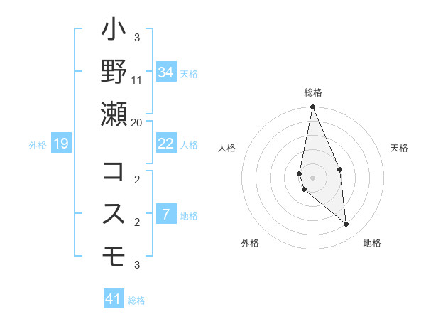 小野瀬 コスモさんを姓名の画数から五運を鑑定