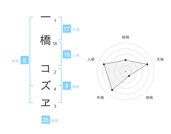 一橋 コズヱさんの天格は17画の4点!