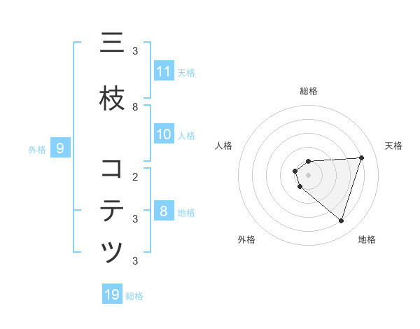 三枝 コテツさんの天格は11画の4点!