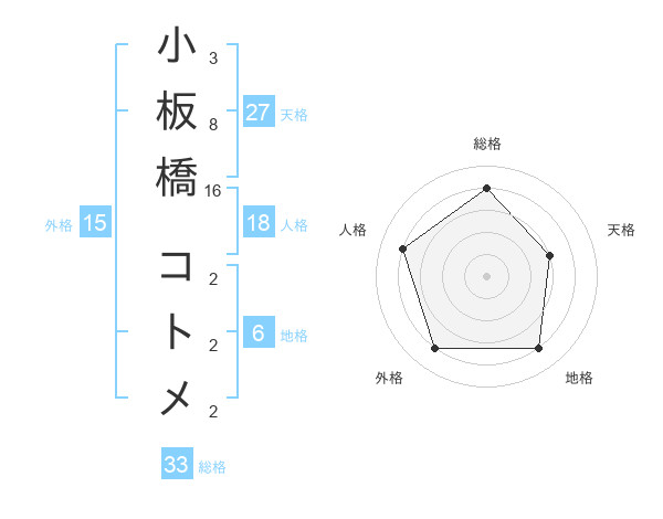 小板橋 コトメさんを姓名の画数から五運を鑑定
