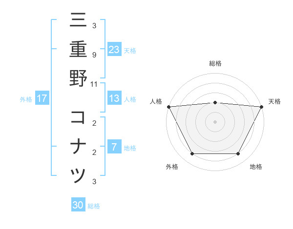 三重野 コナツさんを姓名の画数から五運を鑑定