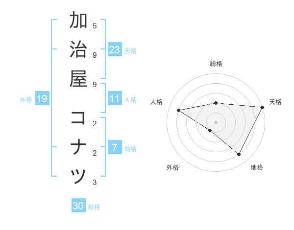 加治屋 コナツさんの天格は23画の5点!