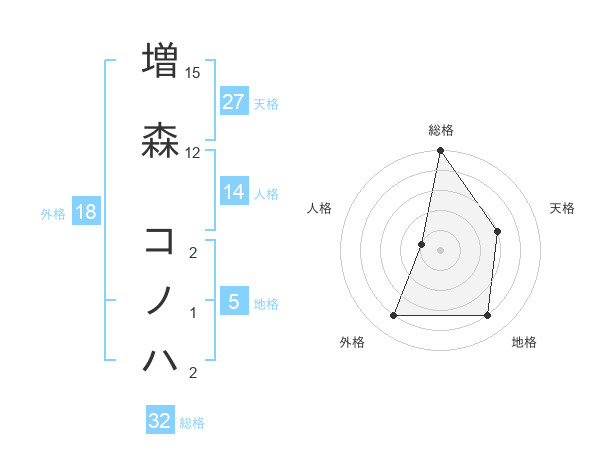 増森 コノハさんの総格は32画の5点!