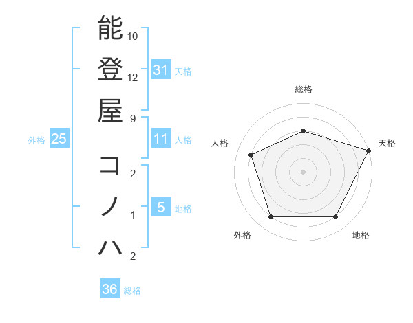 能登屋 コノハさんの天格は31画の5点!