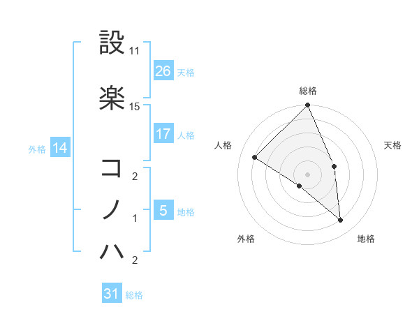 設楽 コノハさんを姓名の画数から五運を鑑定