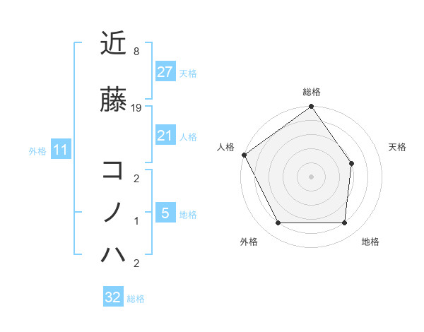 近藤 コノハさんを姓名の画数から五運を鑑定