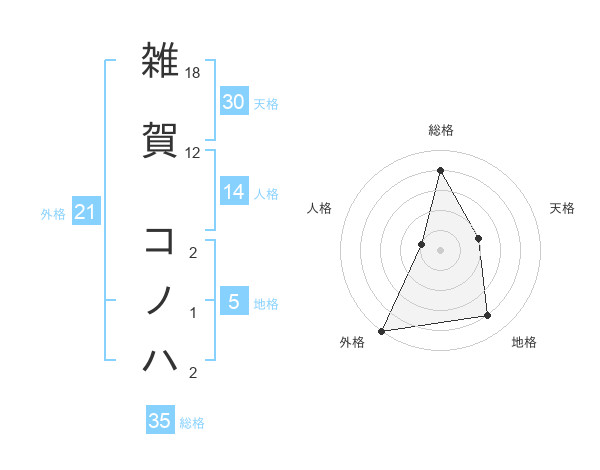 雑賀 コノハさんを姓名の画数から五運を鑑定