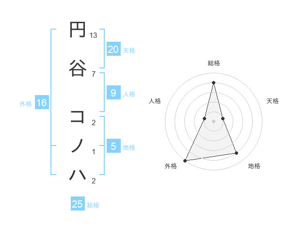 円谷 コノハさんの外格は16画の5点!