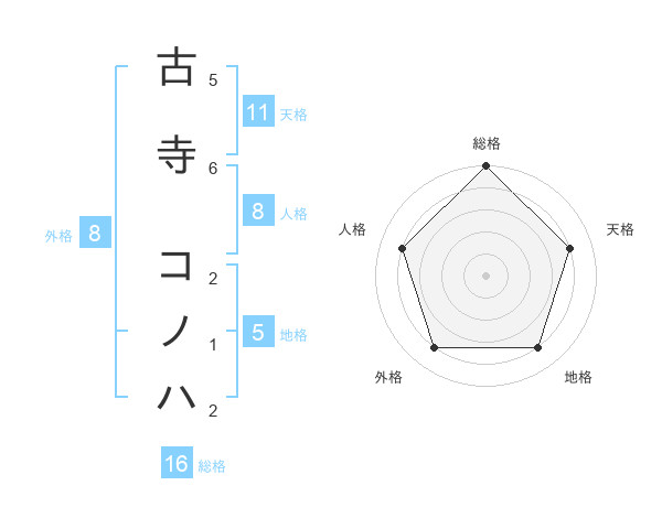 古寺 コノハさんを姓名の画数から五運を鑑定
