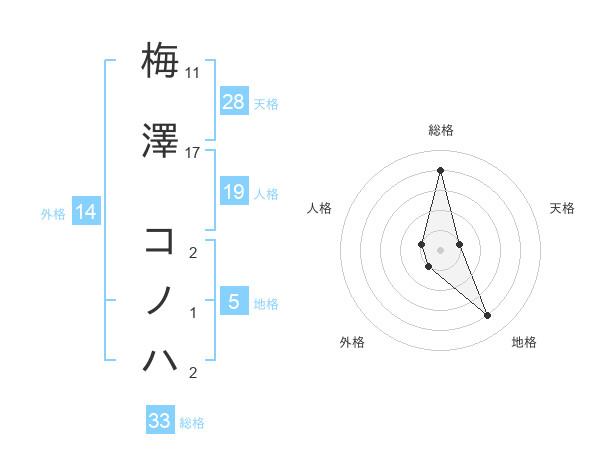 梅澤 コノハさんを姓名の画数から五運を鑑定