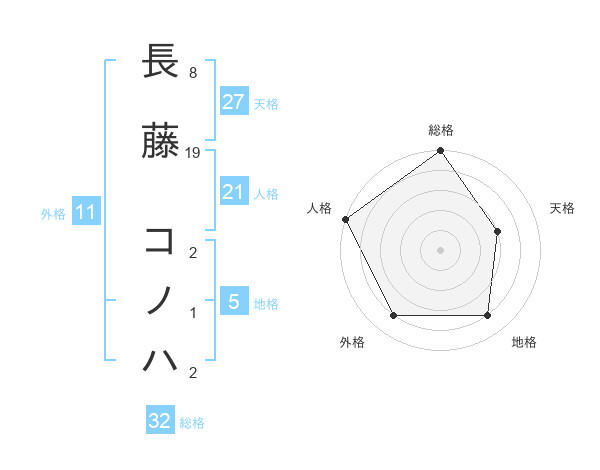 長藤 コノハさんを姓名の画数から五運を鑑定