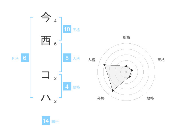 今西 コハさんの総格は14画の1点!