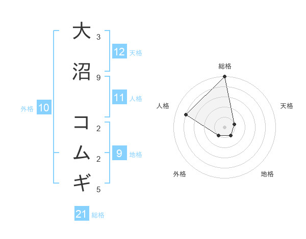 大沼 コムギさんを姓名の画数から五運を鑑定