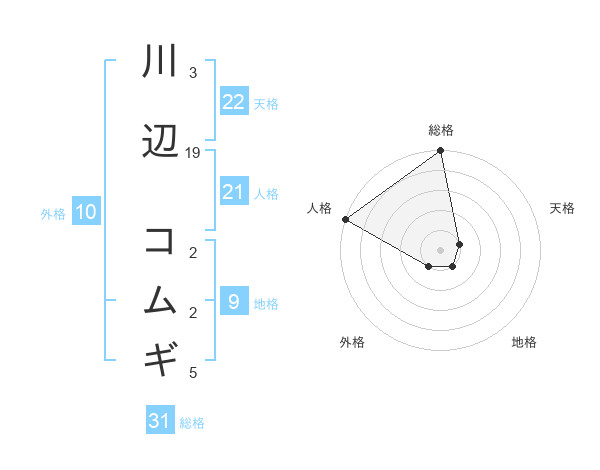 川辺 コムギさんを姓名の画数から五運を鑑定