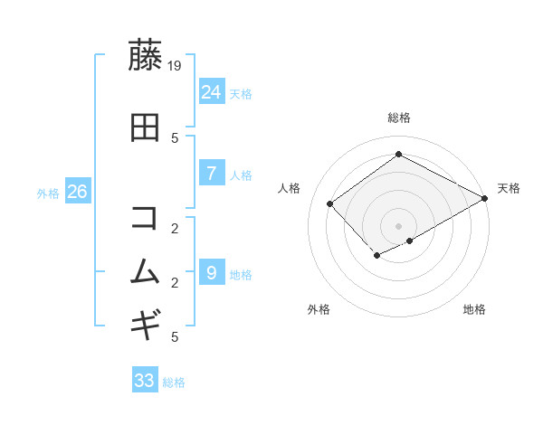 藤田 コムギさんを姓名の画数から五運を鑑定
