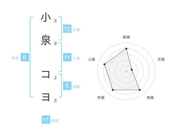 小泉 コヨさんの天格は12画の1点!