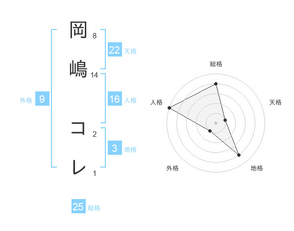 岡嶋 コレさんを姓名の画数から五運を鑑定