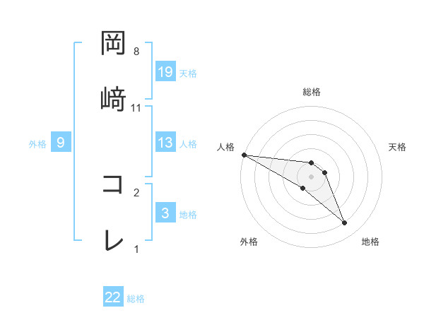 岡﨑 コレさんを姓名の画数から五運を鑑定