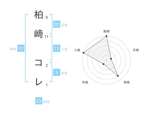 柏﨑 コレさんの総格は23画の5点!