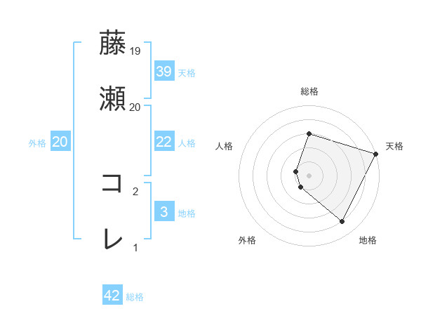 藤瀬 コレさんを姓名の画数から五運を鑑定