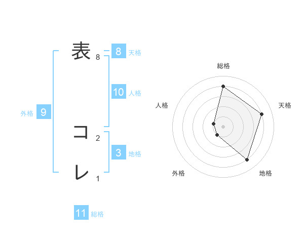 表 コレさんの総格は11画の4点!